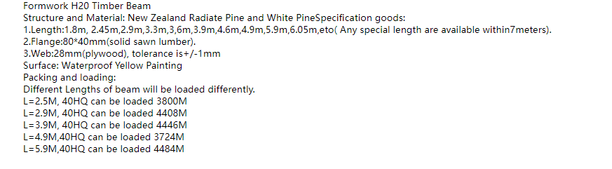 Formwork H20 Timber Beam